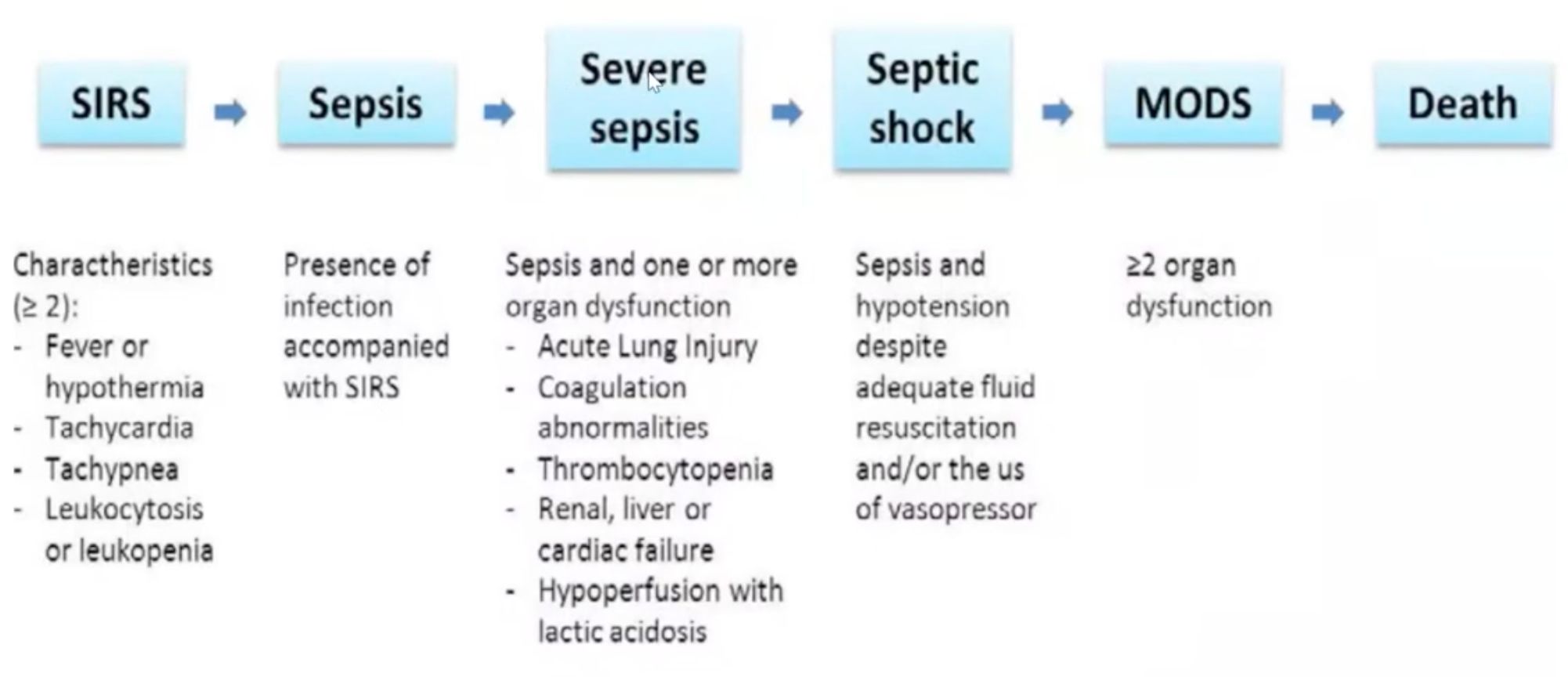 Hội chứng rối loạn chức năng đa cơ quan (Multiple Organ Dysfunction Syndrome, MODS): Sự hiện diện của rối loạn chức năng ≥2 cơ quan trong một bệnh nhân bị bệnh cấp tính mà đòi hỏi sự can thiệp từ bên ngoài để duy trì thăng bằng nội môi (homeostasis)