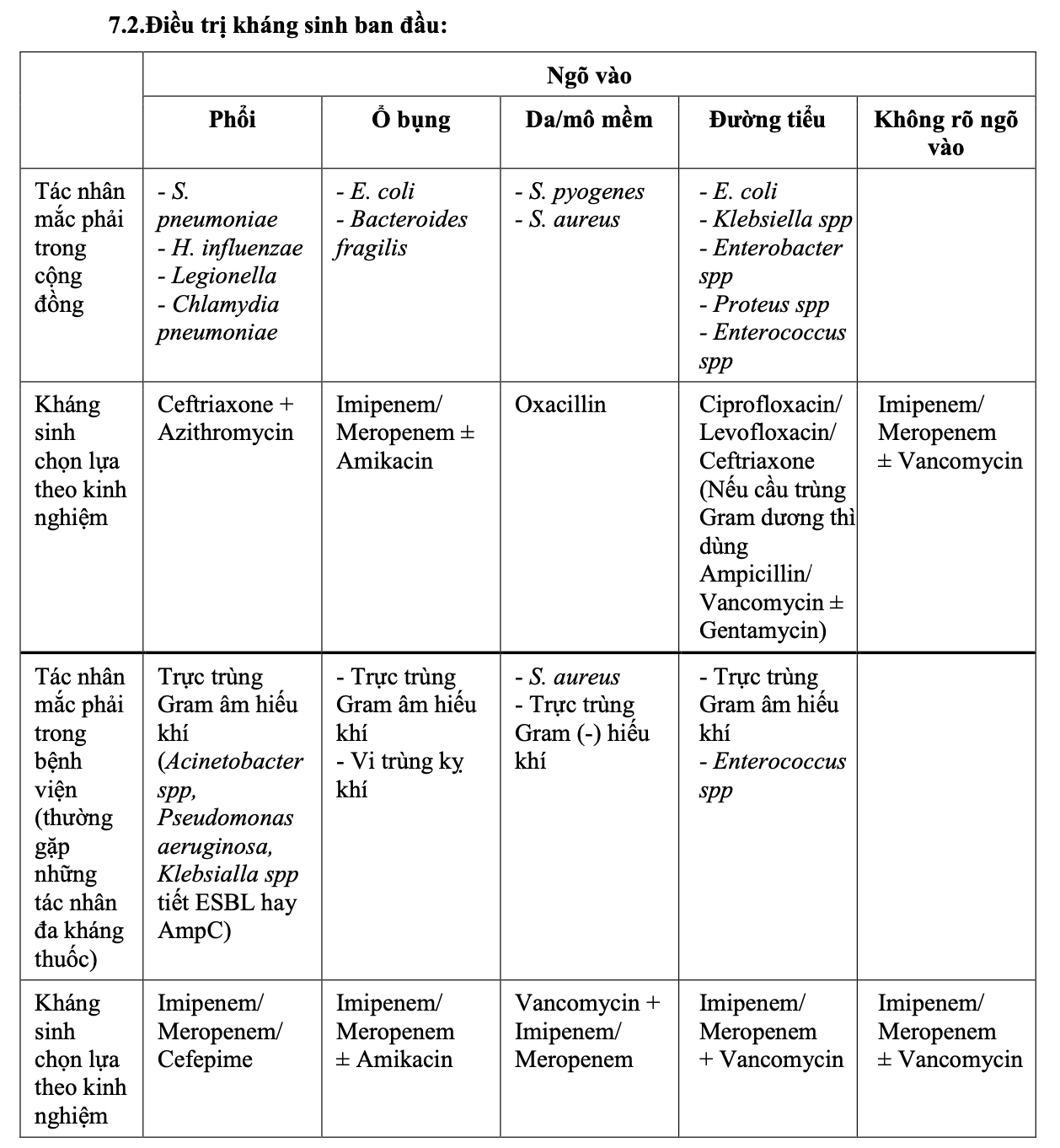 Việc đánh KS sẽ phụ thuộc ổ NT ở đâu, thuốc vào dễ ko, dịch tễ BN có còn nhạy ko, tác nhân ổ NT thường gặp là gì → ghi ở trên là chỉ xài cho BNĐ ở VN thoi, còn các BV khác sẽ ko đúng nữa