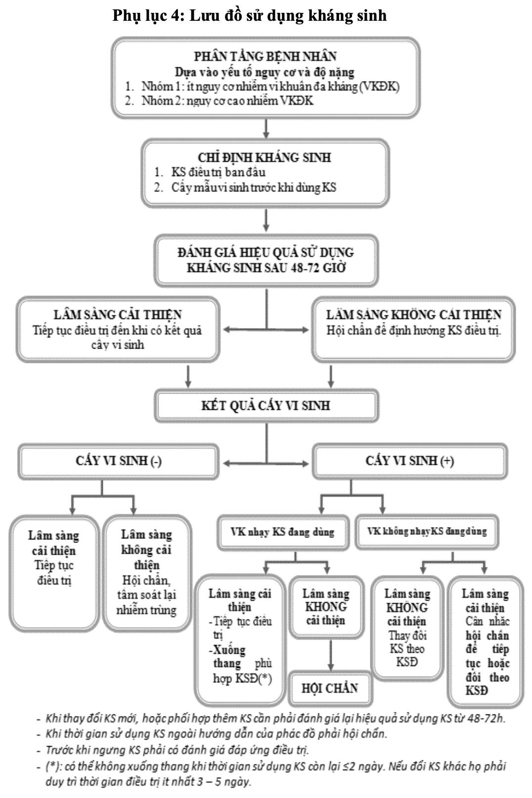 Thay đổi kháng sinh: Nếu lâm sàng không cải thiện sau 48- 72 giờ điều trị